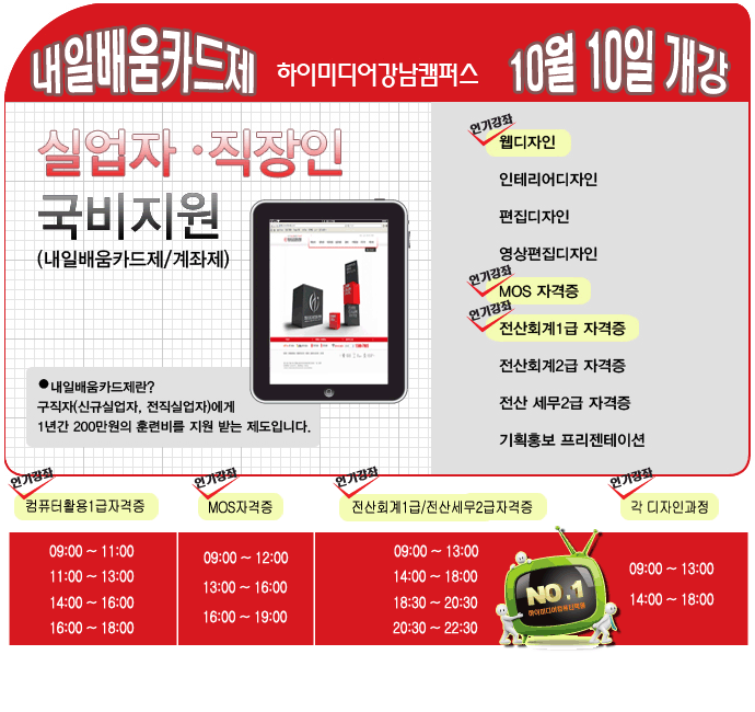 [계좌제 내일배움카드 개강] 2011년 10월 계좌제 개강안내