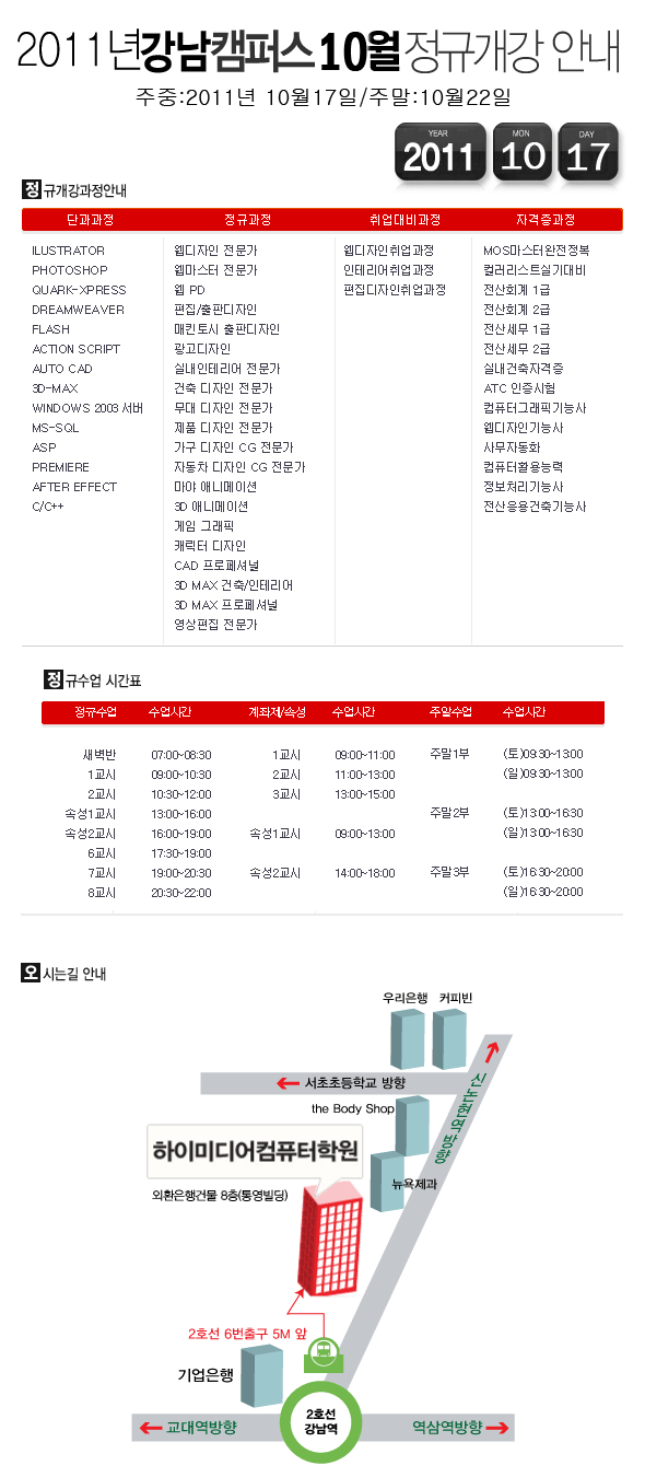 [정규개강] 2011년 10월 정규개강안내