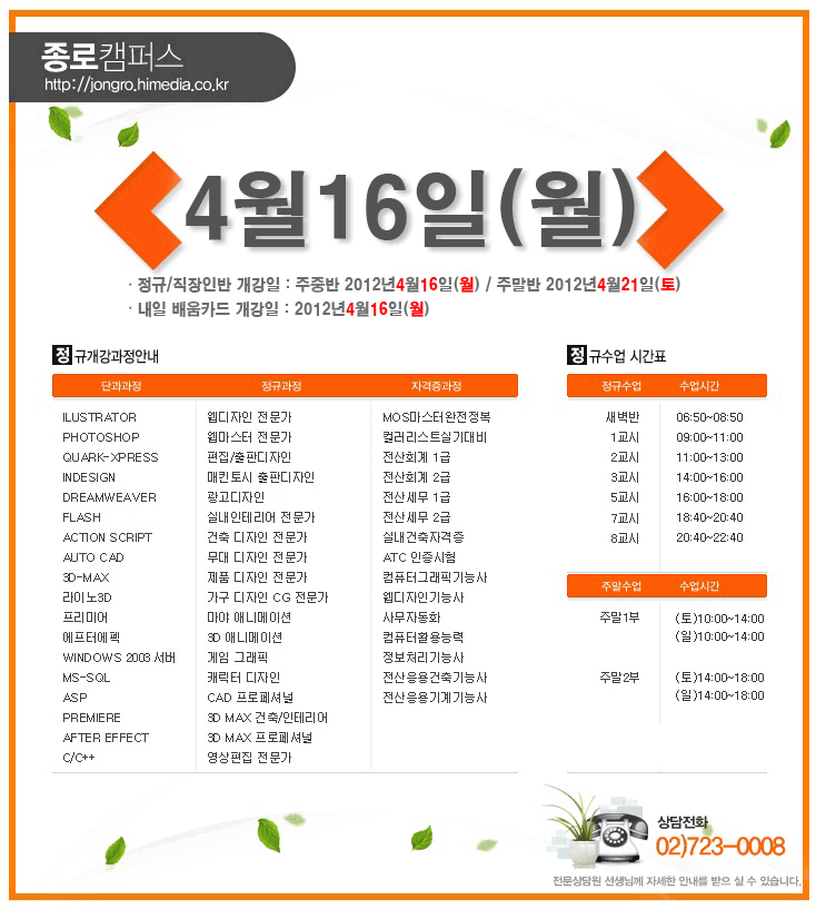 [정규개강] 2012년 4월 정규개강안내