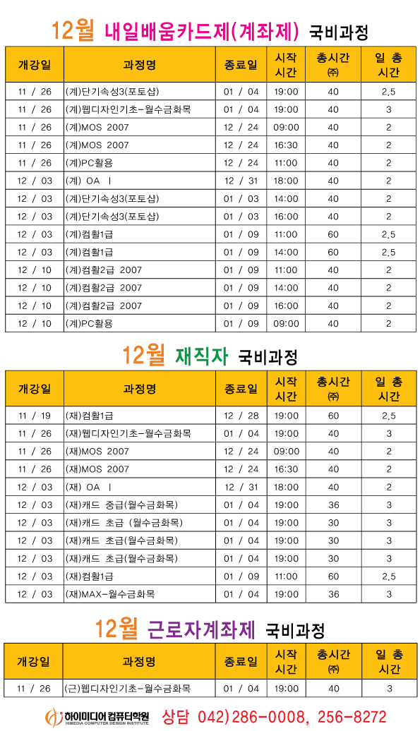 [정규개강]2012년 12월 개강일정입니다.(대전캠퍼스)